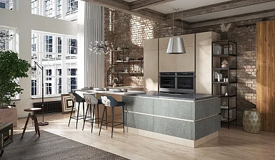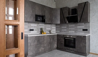 Самыми удобными считаются модульные кухонные гарнитуры, изготовленные на заказ. Когда можно индивидуально определиться с размерами и количеством шкафов, их формой и наполнением. С помощью модульной кухни можно визуально разделить просторное помещение на несколько зон. Для этого подходят модели с барными стойками и островами.