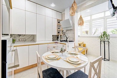 Барная стойка сочетает в себе функциональность, эргономичность и высокую комфортность. Гарнитур такого типа подходит для малогабариток, типовых квартир, загородных домов.