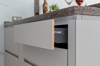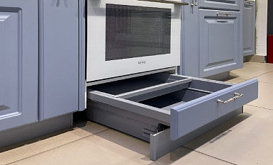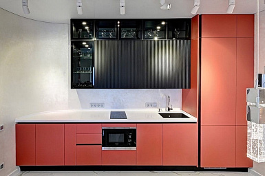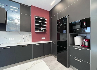 Столешница, заставленная разнообразной бытовой техникой, смотрится довольно неряшливо, особенно в небольших пространствах. Поэтому кухонная мебель со встроенной техникой выглядит гораздо привлекательнее. Спрятать за фасадами можно не только крупные предметы – вытяжку, духовой шкаф, посудомоечную машину, холодильник. Более мелкую технику, например, кофемашину, мультиварку и тостер тоже можно скрыть от глаз. Благодаря этому рабочая поверхность всегда будет выглядеть свободной и аккуратной.