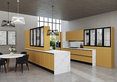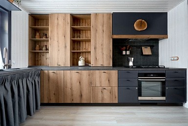 Готовые решения – не самый удачный вариант, особенно для нестандартных помещений. Гораздо практичнее заказать кухню от производителя. В этом случае планировка и дизайн будут разрабатываться с учетом архитектурных особенностей пространства и пожеланий клиента.