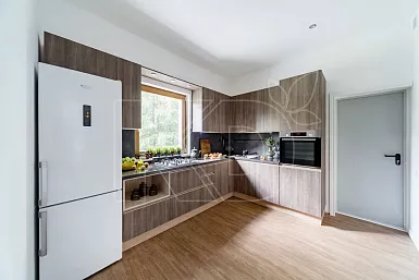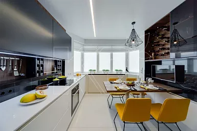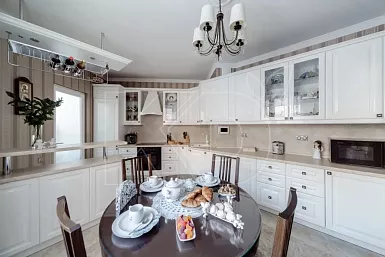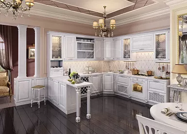 Владельцы просторных квартир и загородных домов часто прибегают к применению П-образных комплектов. Благодаря этому обеспечивается несколько рабочих зон и большое количество места для посуды, бытовой техники.