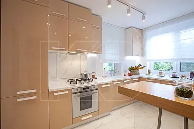 При необходимости вы можете заказать гарнитур со встраиваемой техникой. Такой вариант позволит рационально использовать каждый сантиметр пространства, избегая любых недочетов, связанных с размещением бытовых приборов.