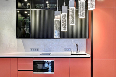 Если в пространство попадает небольшое количество солнечного света, стоит обратить внимание на более яркие версии. Наиболее актуальны сейчас оранжевые, красные, салатовые и желтые кухни. Такие расцветки делают пространство визуально более теплым и позитивным.