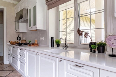 Компания «Кухонный двор» производит гарнитуры из натуральной древесины и качественного МДФ. У нас можно заказать кухню с фасадами любой расцветки. Наша продукция обладает следующими преимуществами: