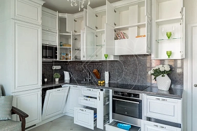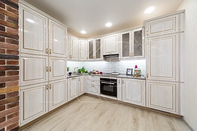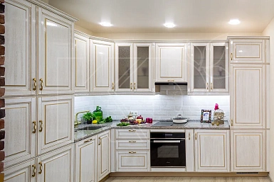 Красота дубовой фактуры полностью раскрывается в классическом стиле. Вся гамма природных коричневых оттенков передает строгость и роскошь классики. Планировка таких кухонь может быть прямой, угловой, параллельной или островной. Особенно эффектно классические модели смотрятся с гнутыми и радиусными фасадами. Подобные версии выглядят плавными и завершенными, добавляя в интерьер особый шик и элегантность.