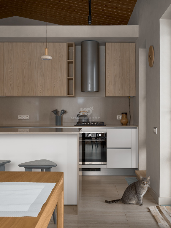 Функциональность здесь не спорит с эстетикой, а поддерживает её. На этой кухне вы не найдете лишних деталей — только характер, порядок и свободу быть собой.