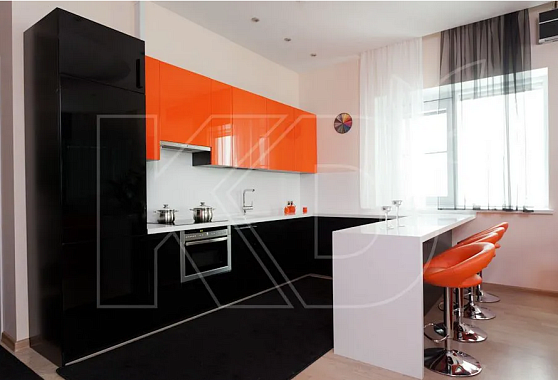 Использование контрастных элементов в интерьере – достаточно распространенный дизайнерский прием. Он позволяет сделать интерьер оригинальным, интересным и ярким. Гарнитуры с фотопринтами обычно изготавливаются из МДФ. Это прочный и надежный современный материал. Дизайнеры любят его за возможность экспериментировать с видами декоративной отделки.
