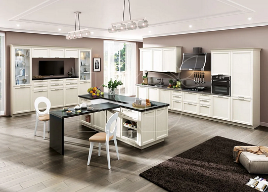 В интерьере кухни с такой мебелью существенную роль, помимо самого гарнитура, играет освещение, кухонная техника и аксессуары. Они должны сочетаться между собой и создавать единое гармоничное пространство.