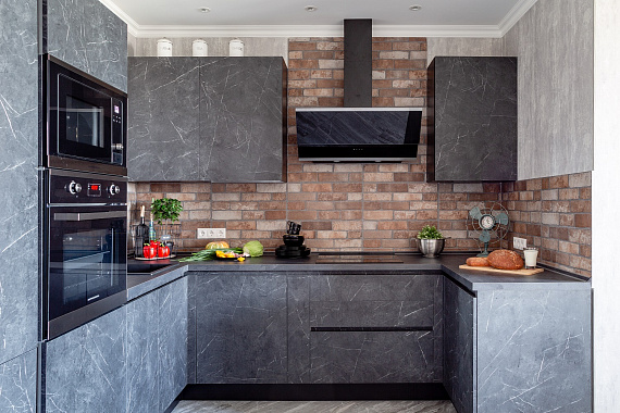 – «И это маленькие кухни?!», – спросит кто-то. Да! П-образный гарнитур вполне реально вписать в ограниченное пространство, если за дело берутся профессионалы. При этом такая кухня будет даже удобнее Г-образной, так как в неё может поместиться намного больше полезных аксессуаров.