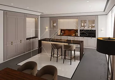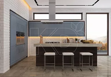 Для просторной квартиры-студии идеальным решением станет островная модель кухни. Гарнитур с такой планировкой подходит для зонирования помещения, потому что остров способен визуально отделить кухню от остального пространства.