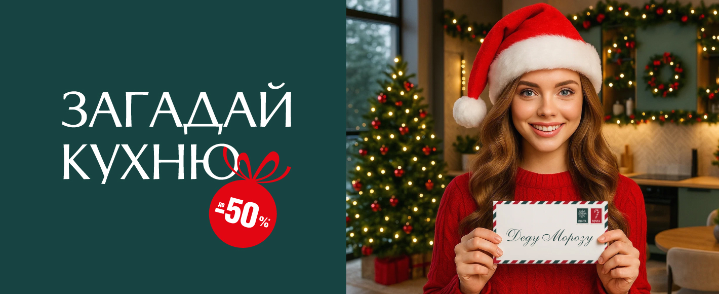 Праздники — время волшебства чудес и исполнения желаний. Встретьте Новый год с кухней, о которой давно мечтали! Мы запускаем праздничную акцию «Загадай кухню» — заберите свою красавицу мечты со скидкой 50%!